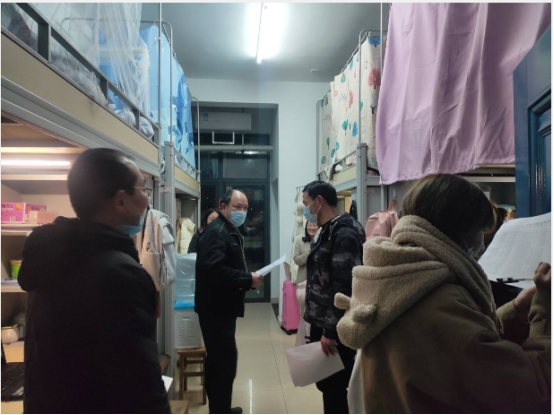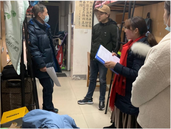 姜学勤、涂江波带队走访了研究生宿舍,详细了解学生的寒假去向及在校期间的学习、生活状况;吴智勇、马小佼则带队走访了本科生宿舍,检查大一学生宿舍卫生状况,询问在校学生的寒假计划及期末复习状况,提醒圣诞、元旦、寒假安全注意事项。