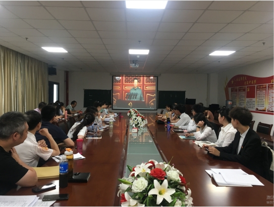 思政课教师、师生党员等50余人在文科楼1104室集中收看了大会直播。