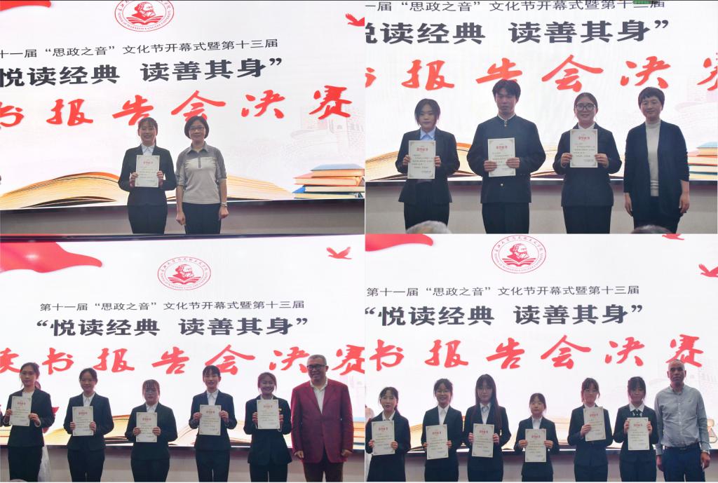 于11教报告厅举行第十一届“思政之音”文化节开幕式暨第十三届“悦读经典·读善其身”读书报告会决赛。师生欢聚一堂,共享书香盛宴。
