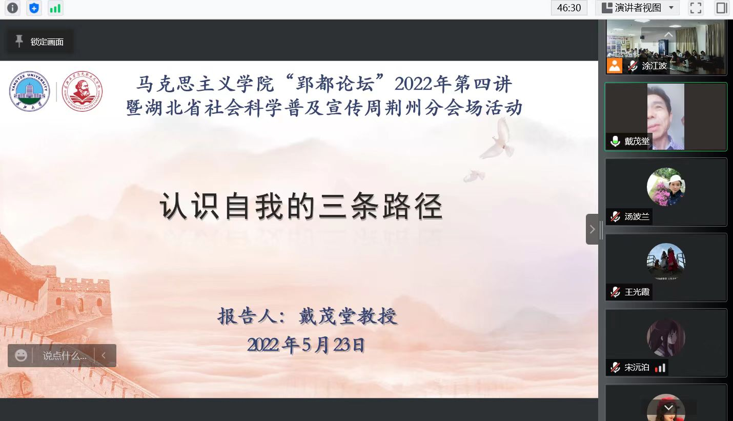 (通讯员 马梦甜)知人者智,知己者明。2022年5月23日上午9点整,北京师范大学哲学国际中心教授戴茂堂为大发娱乐城