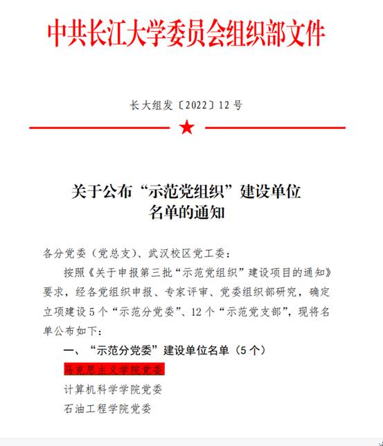 近日,学校组织部下发《关于公布“示范党组织”建设单位名单的通知》,大发娱乐城 党委申报的“示范分党委”获得建设支持。