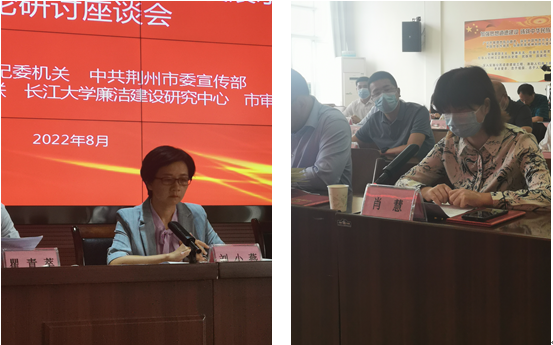 党委书记刘小燕、副院长涂江波、黄晓云副教授、肖慧副教授、刘琼副教授、何波老师应邀参加会议。作为承办方之一,刘小燕书记代表长江大学廉洁建设研究中心在座谈会上作了致辞发言。