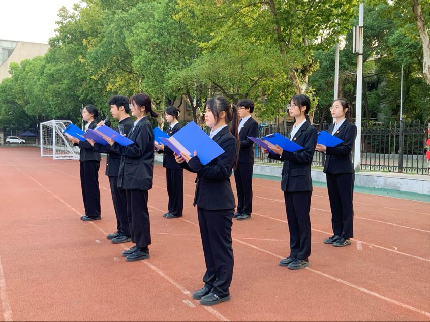 在恢宏的国歌声中,在整齐的合唱声中,红旗缓缓升起,伴着火红的朝阳,滚烫在师生们的眼里。“秋来果熟,春生叶起,你们就是马院这棵大树上长出的新叶。”学生代表蔡少卓进行国旗下发言,以亲身体验对22级新生表达祝贺与期待并对全院学生提出“终生学习、学习终生”的倡议。