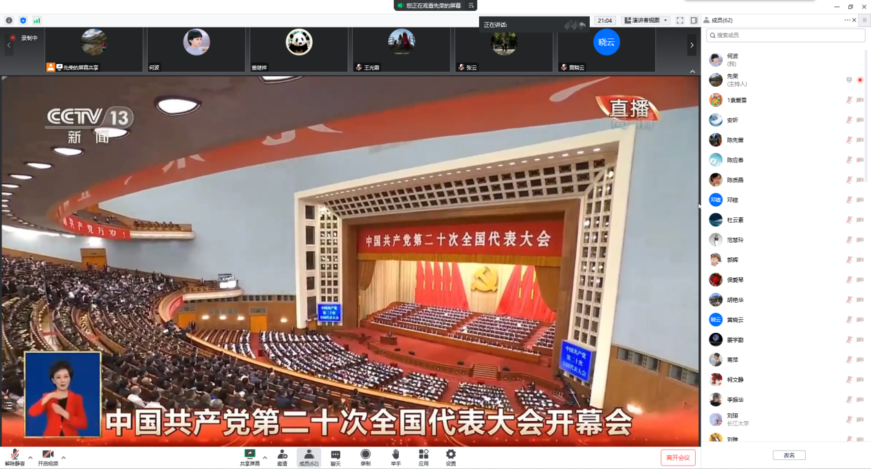 师生齐聚线上,聚精会神地收看了大会开幕盛况。