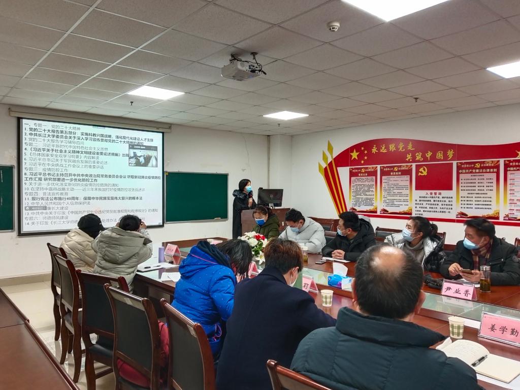 本次理论学习内容包括党的二十大精神、习近平新时代中国特色社会主义思想、疫情防控工作、普法宣传教育、清廉长大建设、师德师风建设六个专题,采取个人自学、主题研讨、集体学习等多种方式开展。刘小燕书记重点领学了党的二十大报告第五部分、《中共长江大学委员会关于深入学习宣传贯彻党的二十大精神的通知》、《习近平关于社会主义精神文明建设重要论述摘编》、《习近平总书记主持召开中共中央政治局常务委员会议 听取新冠肺炎疫情防控工作汇报 研究部署进一步优化防控工作》、《现行宪法公布实施40周年:保障中华民族实现伟大复兴的根本法》等重要文件和会议精神,传达学习了中央经济工作会议和学校中层干部学习贯彻党的二十大精神集中培训会等会议精神,并对大发娱乐城