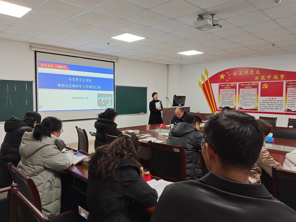 随后,院长助理李振华传达了学校教学工作例会精神,对考试安排、教学运行、创新创业等工作进行了强调,部署了师范专业认证、审核评估自评自建、教学创新大赛筹备启动等重点工作。副院长涂江波围绕研究生招生、培养以及学科建设等工作进行了部署,副书记马小佼通报了寒假期间学生工作有关情况以及开学初的重点工作,动员老师们以“万名党员教师家校协同行动”为契机深入开展谈心教育、生命教育。