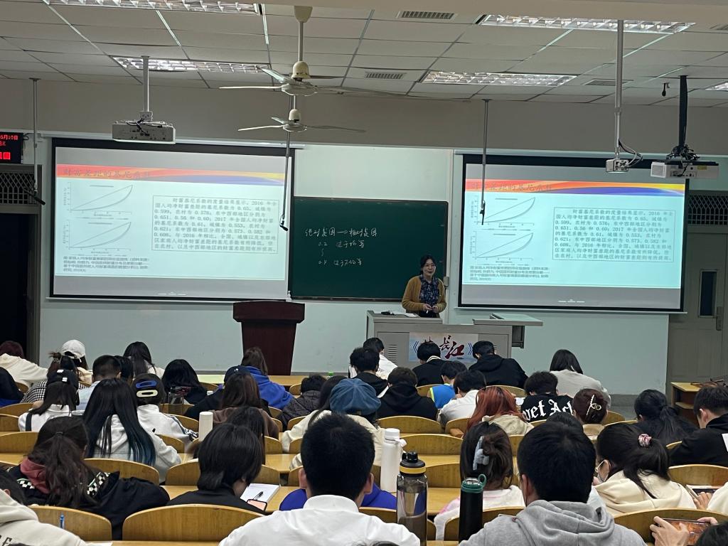 接续脱贫攻坚,走向共同富裕。肖老师从人类反贫困的整体视域出发,以“共同富裕的时代背景”“理解共同富裕的科学内涵”“把握共同富裕的实践途径”和“认清共同富裕的未来征程”四个篇章带领同学们深刻领略共同富裕的丰富内涵。共同富裕是社会主义的本质,是中国式现代化的重要特征。共同富裕是全体人民共同富裕,是人民物质生活和精神生活统一的富裕。共同富裕是仍然存在一定差距的富裕,不是平均主义的同等富裕、同步富裕。