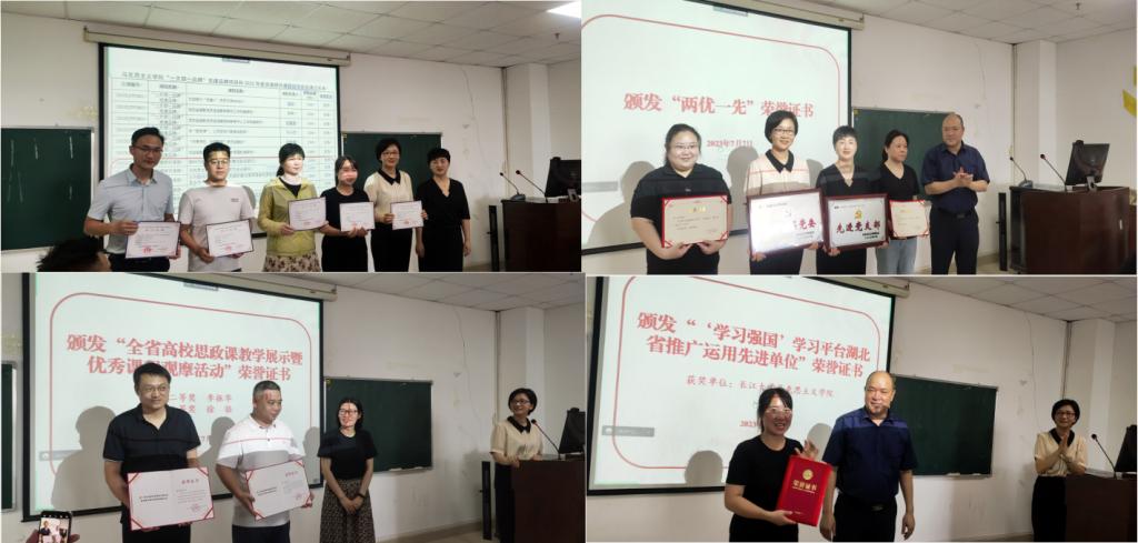 “一支部一品牌”党建项目和2022年度党建研究课题顺利结项的13位项目负责人颁发了结项证书,张莉老师为全省高校思政课教学展示暨优秀课程观摩活动获奖者李振华老师、徐骆老师颁发了荣誉证书,姜学勤院长颁发了大发娱乐城