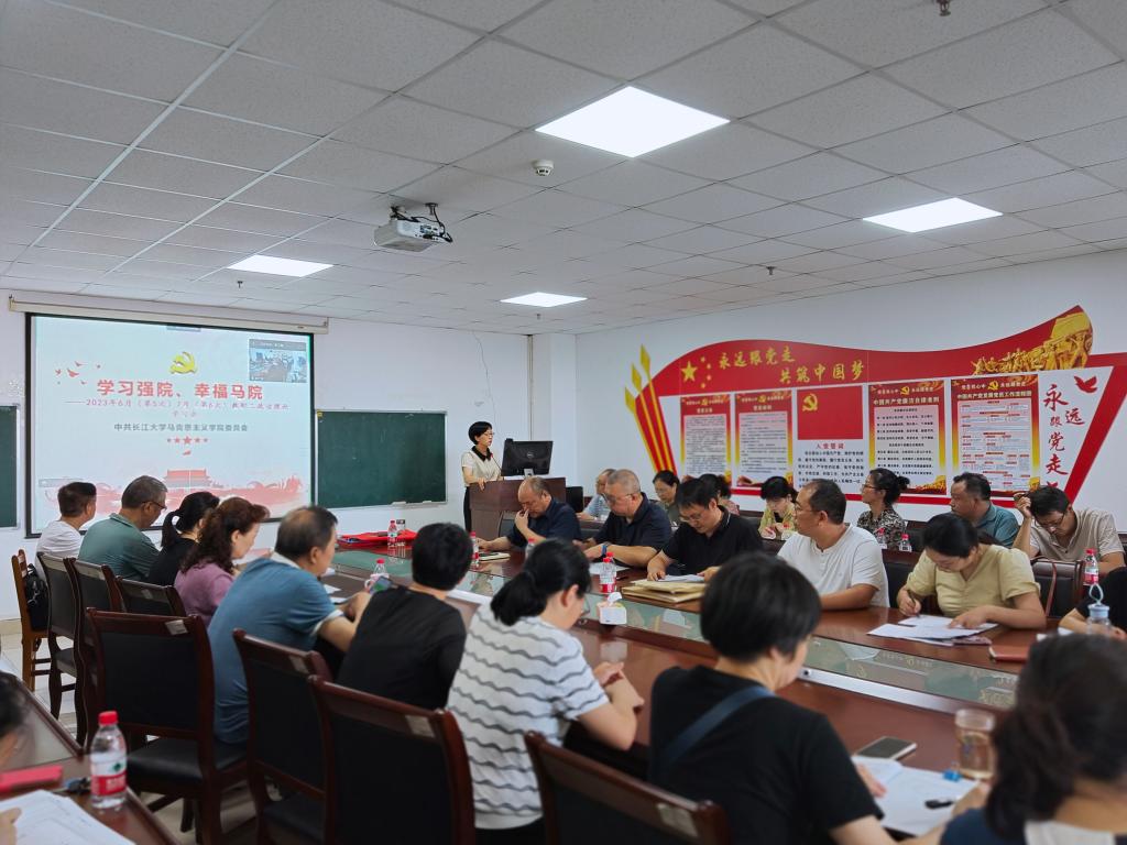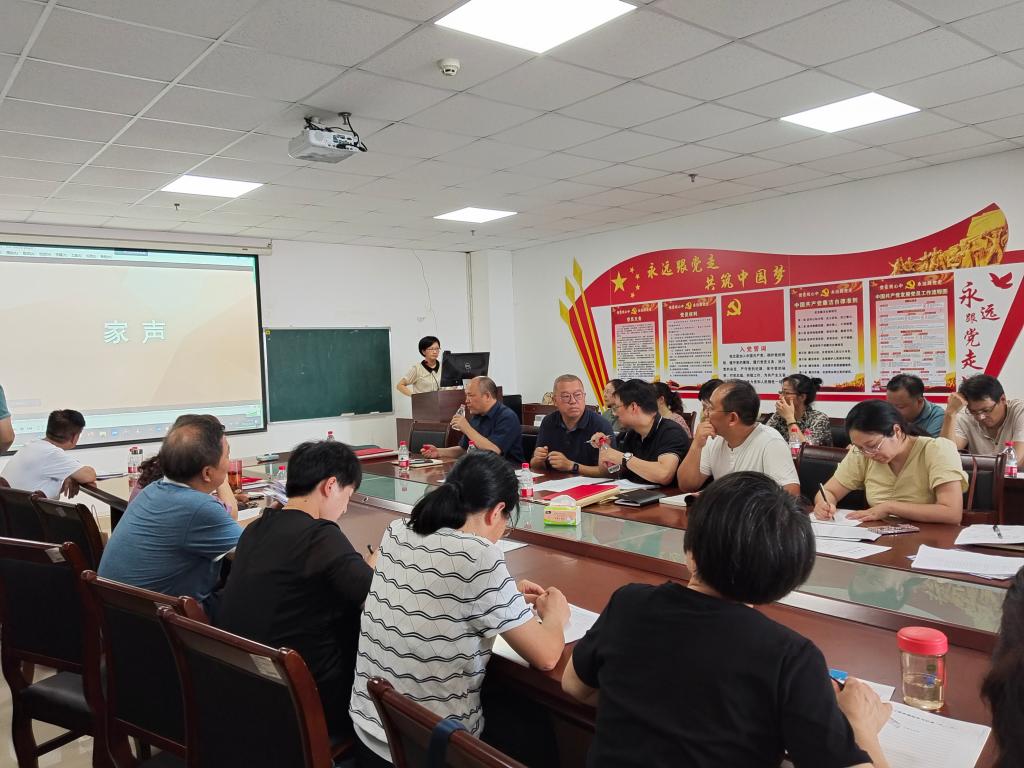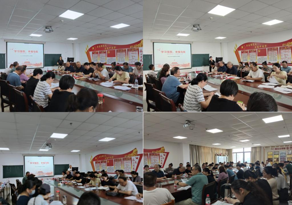 在文科楼1104室召开2023年春季学期期末教职工大会,回顾总结一学期工作,部署暑期重点任务。全体教师以线上线下相结合的方式参会。会议由院长姜学勤主持。
