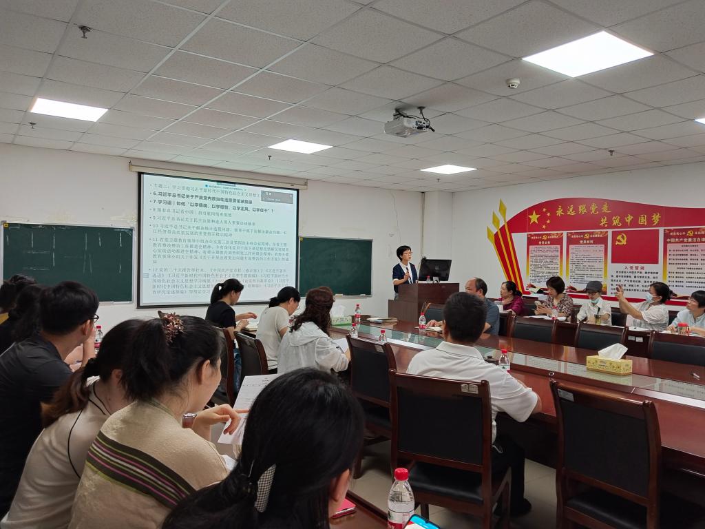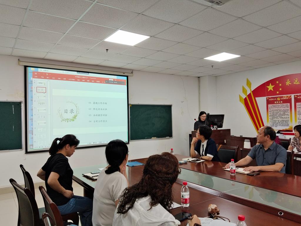 涂江波副院长强调了本学期科研和研究生教学工作安排,张莉副院长讲解了师范专业认证、本科教学评估以及开学初教学工作重点任务,汤慧珍副书记对暑期家访、就业核查及2023级迎新等学生工作情况进行了通报。