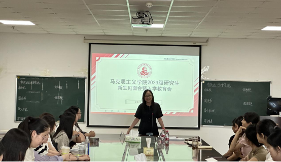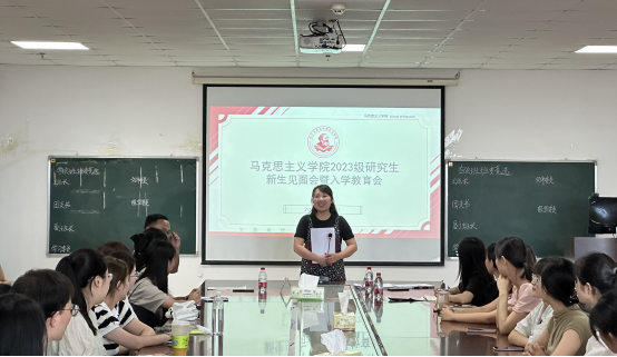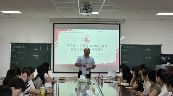 在文科楼1104会议室召开2023级研究生新生见面会暨入学教育会。副院长涂江波、院党委副书记汤慧珍、学工办主任张云雾、研究生辅导员李敏和全体2023级研究生参会。