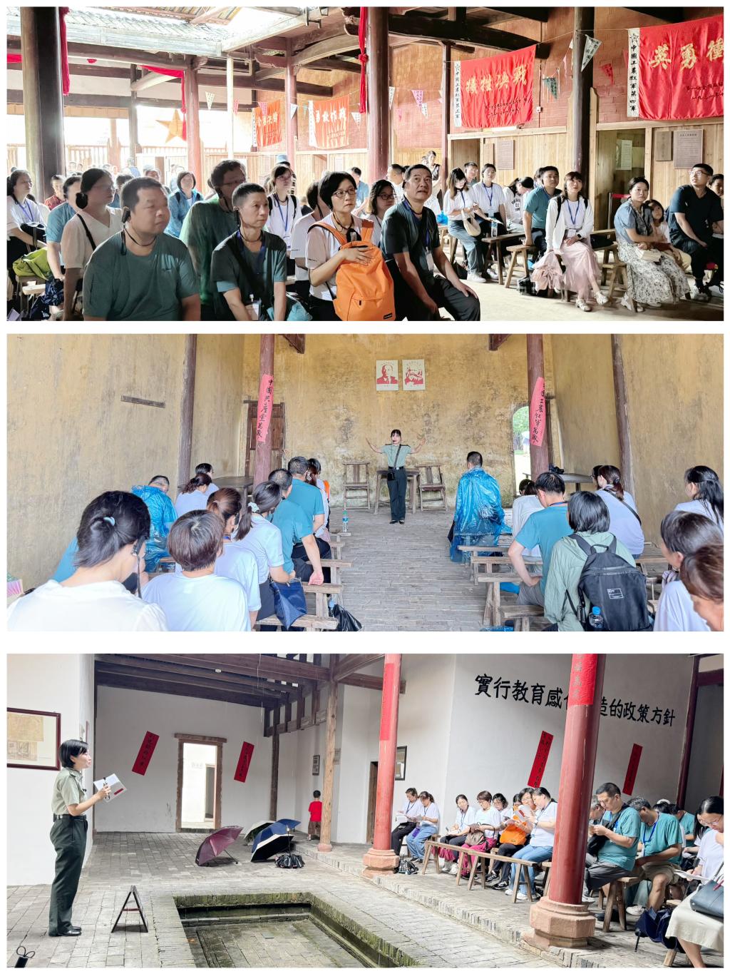 朱慧琳副教授讲授的微党课《八子参军》;在叶坪镇黄沙村华屋,随着华丕懋老师动情细致地讲解,学员们聆听了红军“十七棵松”的故事,感悟红军战士的革命信念,以及在党和政府支持下华屋的传承与变迁。