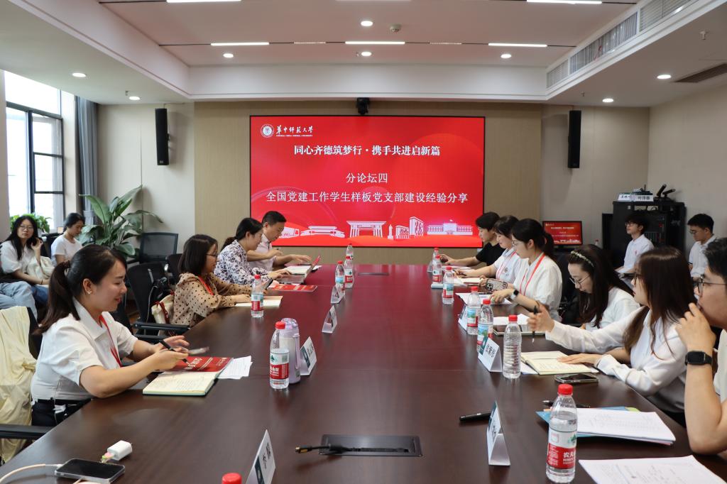 第四分论坛全国党建工作学生样板党支部建设经验分享活动由华中师范大学大发娱乐城 辅导员王海龙主持。大发娱乐城 辅导员张云雾以《红色基因立根 奋斗精神铸魂——长江大学学生党支部创建样板支部的探索与启示》为题率先分享了大发娱乐城 - 大发娱乐城官网入口 本科生党支部建设经验,来自西南大学、武汉理工大学、中国地质大学(武汉)、华中农业大学、华中师范大学、武汉纺织大学等学校的师生代表就党支部建设经验、特色品牌、未来发展等方面进行了分享交流。自由讨论环节,参会代表就“挑战杯”竞赛经验、暑期“三下乡”社会实践经验、学生党建品牌如何长期建设、理论宣讲团建设以及O2O党建模式等问题和经验进行交流分享。最后,大发娱乐城 党委副书记汤慧珍、湖北师范大学大发娱乐城 达成党支部书记郑小蓉做总结发言,表示各个党支部都彰显出了精益求精的精神、创新发展的意识和青年青春的风采,并希望以后各兄弟院校能够加强交流学习、加强党性修养,共同服务国家建设。