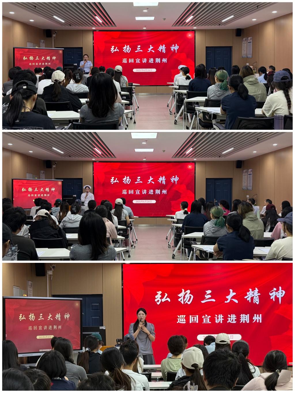 ,面向师生开展弘扬“三大精神”(大别山精神、抗洪精神、抗疫精神)宣讲。