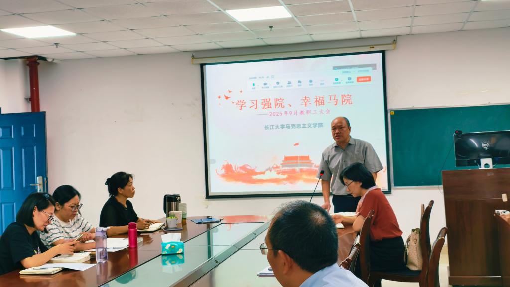2025年秋季新学期教职工大会在文科楼1008室举行。全体教职工参加大会,会议由院长姜学勤主持。