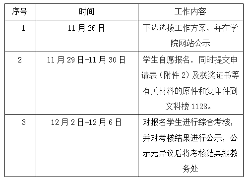 3.对学生提交的材料进行审核,淘汰不符合选拔条件的申请。