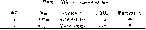 2022年推免生拟录取名单予以公示,公示日期:2021年10月8日-10日。
