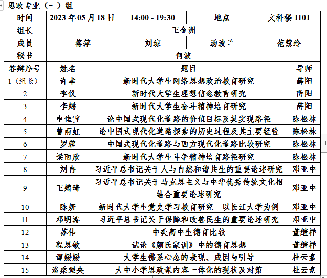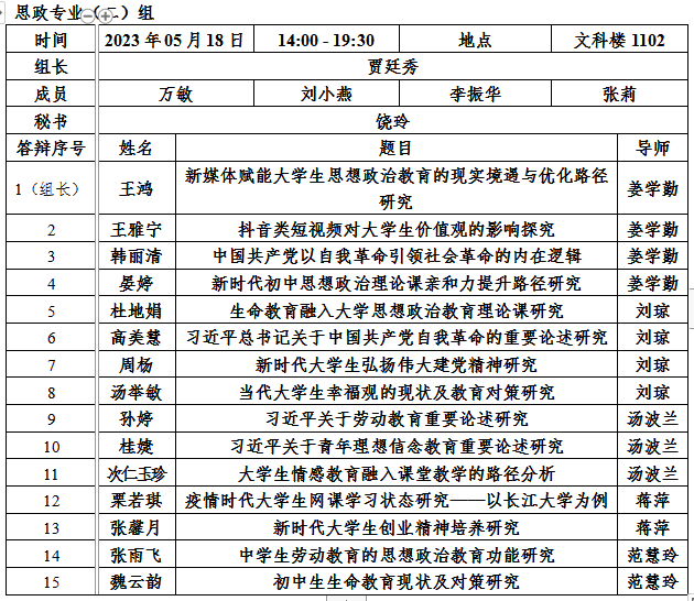 2. 每小组安排半天答辩,学生人数应在15名以内;安排全天答辩,学生人数应在30名以内。