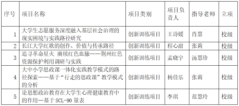 根据学校《关于大发娱乐城第十七批“大学生创新创业训练计划”项目申报的通知》,以及大发娱乐城 《2024年大发娱乐城 “大学生创新创业训练计划”项目申报答辩通知》相关安排,通过学生项目申报汇报答辩,专家评审,拟推荐肖慧老师指导的《大学生志愿服务深度融入基层社会治理的现实困境与实践路径研究》等5个项目项作为校级大学生创新创业项目,具体名单见附件。