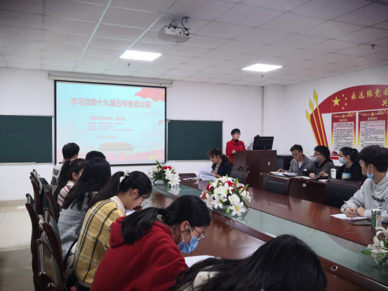 党委副书记马小佼为全体入党积极分子、发展对象、党员以及学习小组成员讲了题为《学习党的十九届五中全会公报》的专题党课。