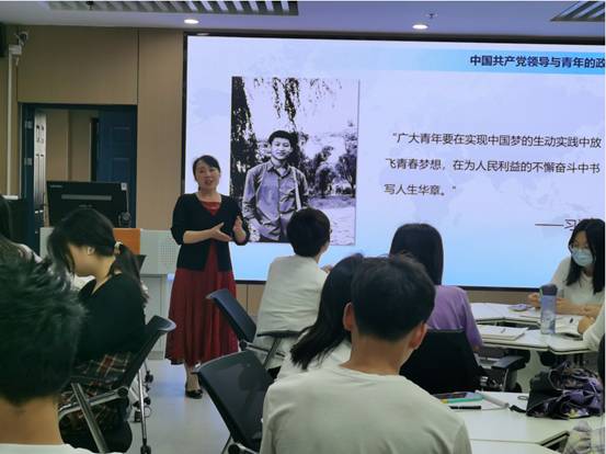 “这既是一个宏大的主题,又是一个与青年学生息息相关的微观话题”,马书记从青运史、党的领导、青年“跟党走”和政治使命感四方面联系社会时政热点展开阐述。中国共产党是在青年运动中产生壮大的,同时又是青年运动的坚强领导核心。马小佼简明扼要的概括了社会主义革命、建设和改革的各个时期中国共产党与共青团的血肉联系。正如她所说:青运史就是一部热血青年在党的领导下建功立业的斗争史、奋进史,是一批又一批青年马克思主义者茁壮成长的历史。