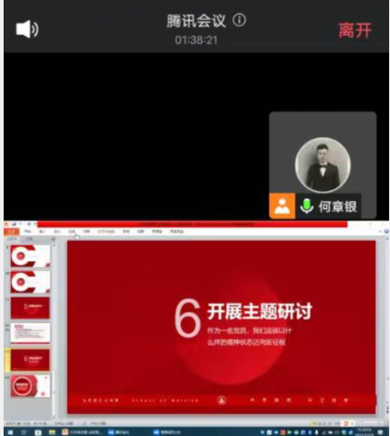 党委副书记马小佼、党建秘书张云雾与其他各党支部书记、支委进行了线上观摩,观摩活动由支部书记何章银主持,支部全体党员参会。