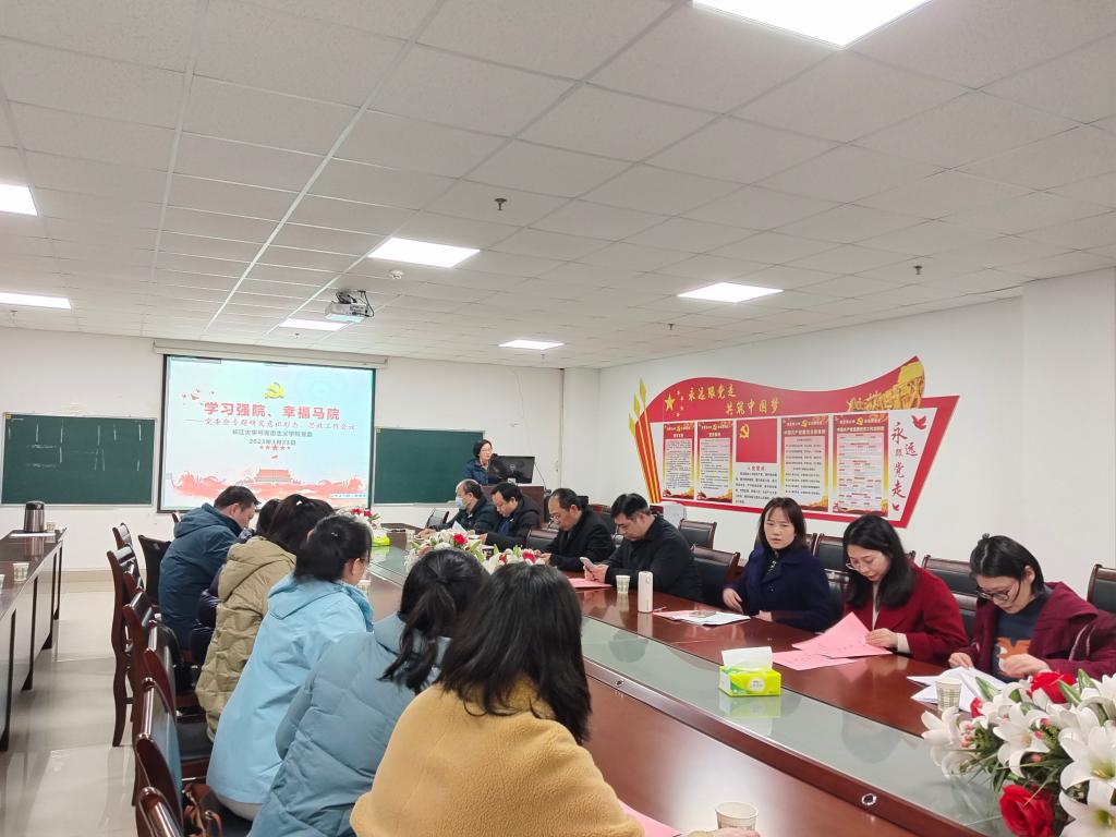在文科楼1104室召开党委会,专题研究意识形态与思政工作。会议由院党委书记刘小燕主持,全体院领导、二级机构负责人、党支部书记参会。