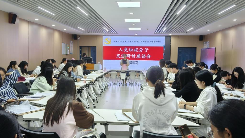 活动伊始,入党积极分子、发展对象、预备党员分别围绕主题开展座谈。入党积极分子晏婉怡、蔡坤鹏、杨心萌同学在发言中深刻阐述了新思想的学习心得,彰显了新时代学子的责任担当。发展对象王诗媛、李浩然同学分享了汲取榜样力量的心路历程,生动讲述了革命党人向警予的英雄事迹。预备党员田语萱从“政治有信念、规矩有纪律、道德有品行、奉献有作为”四个层面,展现了其深邃的思想洞察和坚定的党性信仰。座谈后,张云雾带领大家共同观看专题节目《榜样》,从优秀的共产党人身上汲取奋进力量,巩固学习研讨成果。