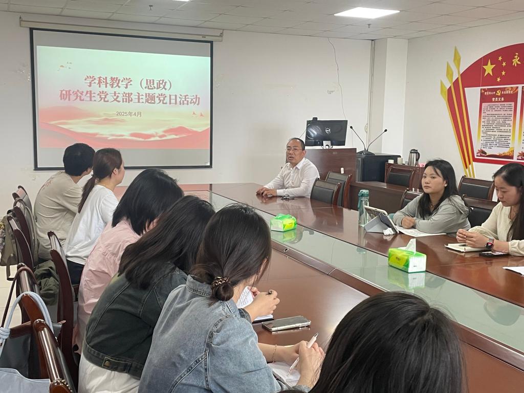 (通讯员 石秋月)为贯彻落实党的二十届三中全会精神,巩固深化党纪学习教育成果,锲而不舍落实中央八项规定精神,4月18日,学科教学(思政)研究生党支部在文科楼1104室开展“深入贯彻中央八项规定精神学习教育”主题党日活动,全体党员以及入党积极分子以线上线下相结合的方式参会。