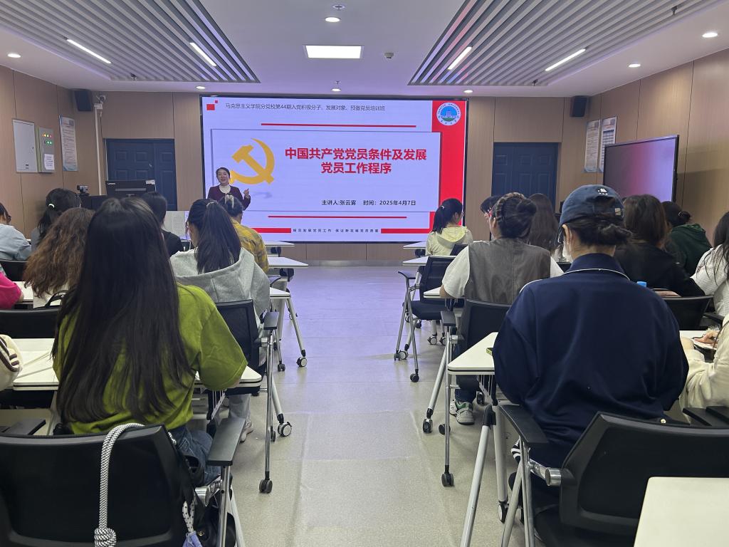 党建秘书、本科生党支部书记张云雾主讲,全体新增入党积极分子、发展对象和预备党员参会。