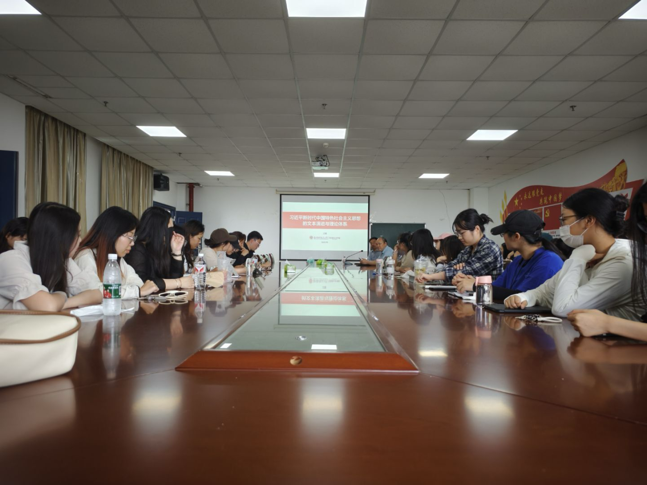 讲座伊始,王智教授通过《习近平谈治国理政》系列书籍作为导入材料,深入浅出地为师生们解读了习近平新时代中国特色社会主义思想的文本演进过程以及其博大精深的理论体系。在讲解理论体系时,王智教授更是旁征博引,从经济、政治、文化、社会、生态文明等多个方面,系统地梳理了习近平新时代中国特色社会主义思想所涵盖的丰富内容。同时,王智教授还结合实际案例,从历史脉络的角度出发解读了中国近代社会从物器到制度再到文化的变局之路。王智教授强调,习近平新时代中国特色社会主义思想是马克思主义中国化的最新成果,是党和人民实践经验和集体智慧的结晶。