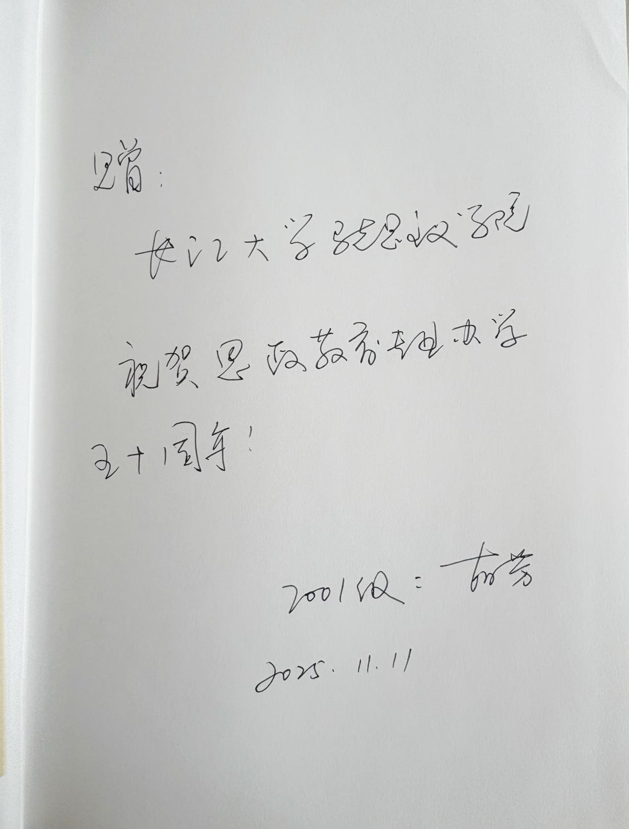 致谢,表示将妥善收藏并开放这批著作,助力思政课教学改革与学术研究,进一步深化与优秀校友的学术交流,推动思政教育高质量发展。