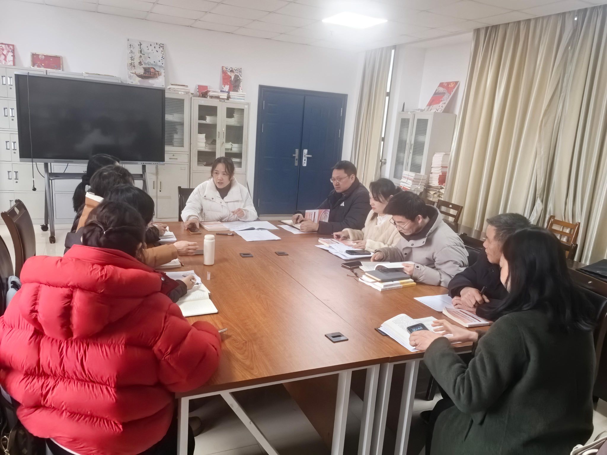 1002会议室举行新学期集体备课会。教研室全体任课教师齐聚一堂,共研教学思路、共商育人举措,会议由教研室主任祝冬芹主持。
