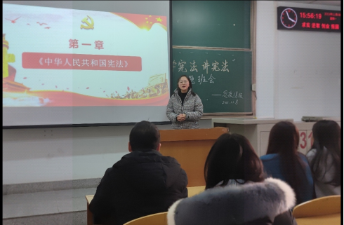 11月8日,思政20级全体学生于13教B310开展“学宪法 讲宪法”主题班会,会上,思政12002班李春燕向同学们普及了国家宪法日暨全国法制宣传日等法治知识,讲述了国家宪法日的设立意义,倡导大家作为新青年应主动弘扬宪法精神、履行宪法使命。
