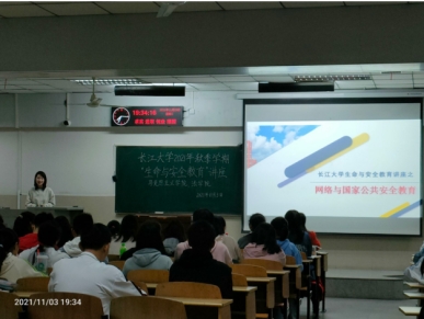 赵老师主讲的内容是网络与国家公共安全,她首先强调了诚信考试的重要性,并对大家诚信考试作出具体要求;接着对实验室安全做了简单介绍,就实验器材、操作安全等做了简单阐述;随后又对预防校园贷与金融安全做了详细讲述,结合身边具体案例,着重强调要守护好自己的钱袋子,理智消费等。