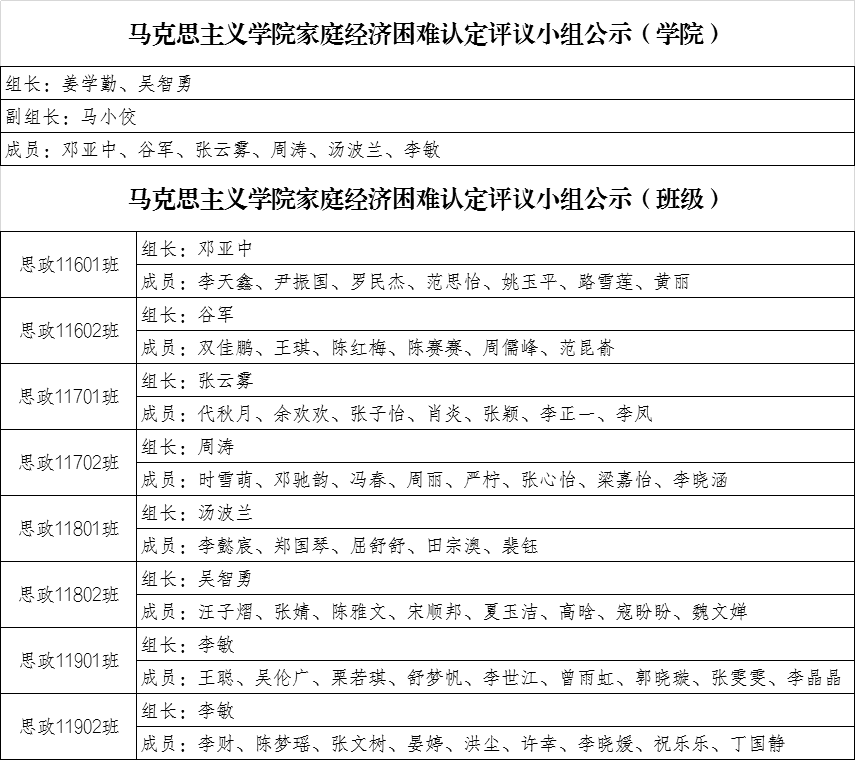 【信息公示】大发娱乐城 家庭经济困难认定评议小组名单
