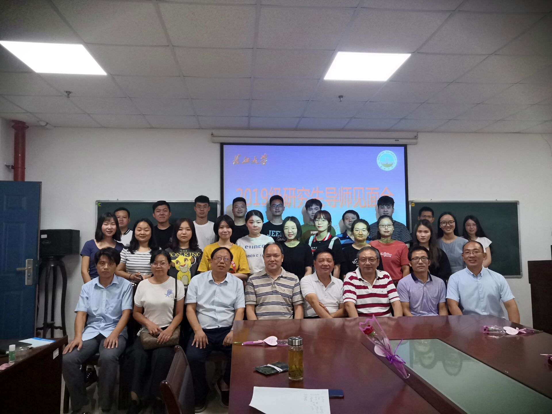 于2019年9月10日上午9时,在文科大楼1104会议室举行研究生见面会。姜学勤院长、涂江波副院长、王金洲教授、尹业香教授、彭开智副教授、李永刚副教授、周涛副教授以及2019级全体研究生参加会议。
