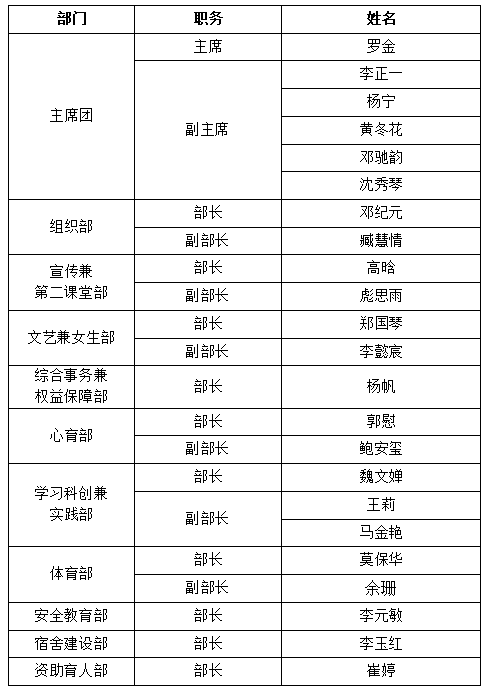 第八届团委学生会副部及以上学生干部换届竞选结果公示如下:
