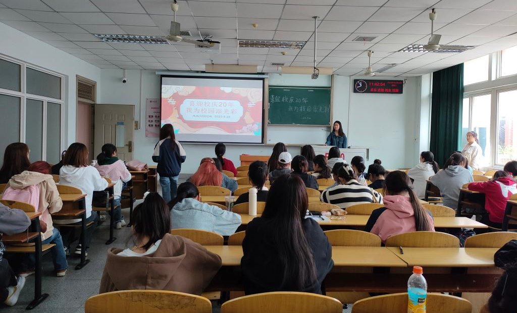 组织本、研各班级陆续开展“喜迎校庆二十年,我为校园添光彩”主题班团会。