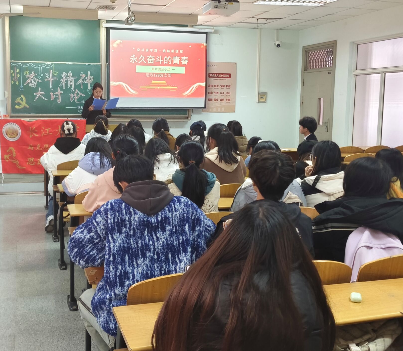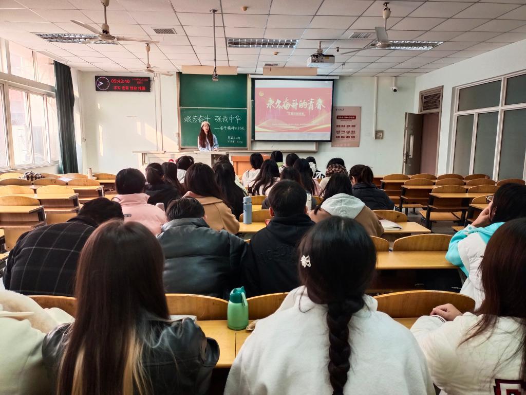 各支部通过视频学习、线上线下讨论、故事分享等形式组织学习了“永久奋斗的青春”主题话剧团课以及习近平总书记关于奋斗精神的重要论述。思政12301支部还邀请班主任孙萌老师与学生面对面交流,孙老师勉励大家坚定理想信念,永葆奋进定力,以时不我待的紧迫感和舍我其谁的使命感,奋跃而上、飞速奔跑,书写无愧于青春的人生华章。