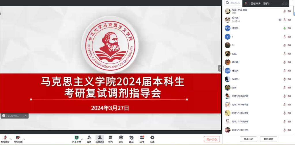 党委副书记汤慧珍、辅导员张云雾及2024届考研学生共同参会。