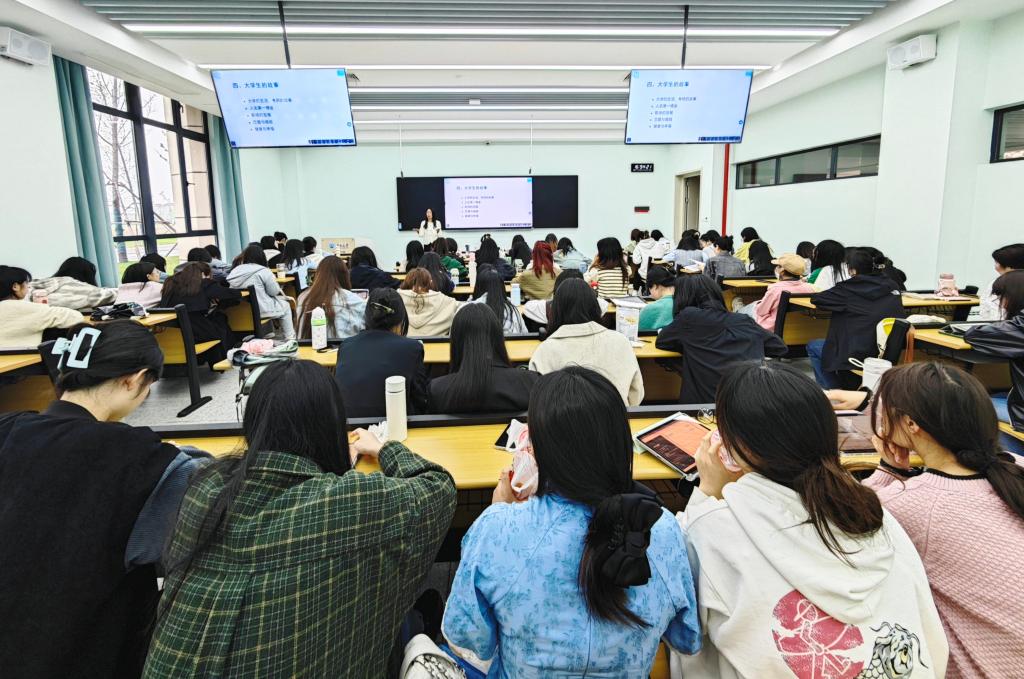 思想政治教育专业2001级校友、育山(上海)教育科技有限公司创始人吴云英为青年学子作了职业规划与就业指导专题讲座,她结合自身经历鼓励同学们坚定理想、合理规划,结合个人能力特长确定职业目标,树立理性、平实的择业观、就业观。