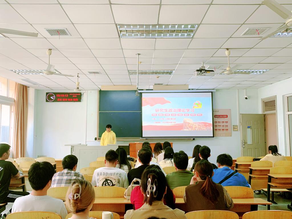 研究生在13教C-117教室开展政治理论学习。2023级全体研究生参加学习。