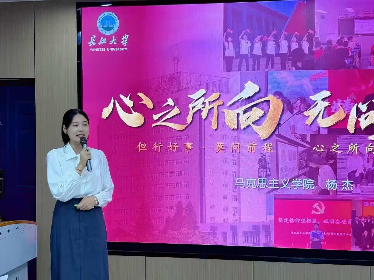 活动接近尾声,汤慧珍对整场答辩会进行了深刻的总结。她用“感谢”、“惊喜”、“祝福”三个关键词表达了对与会人员的感谢、对同学们优异表现的惊喜以及对2024级新生真挚的祝福。