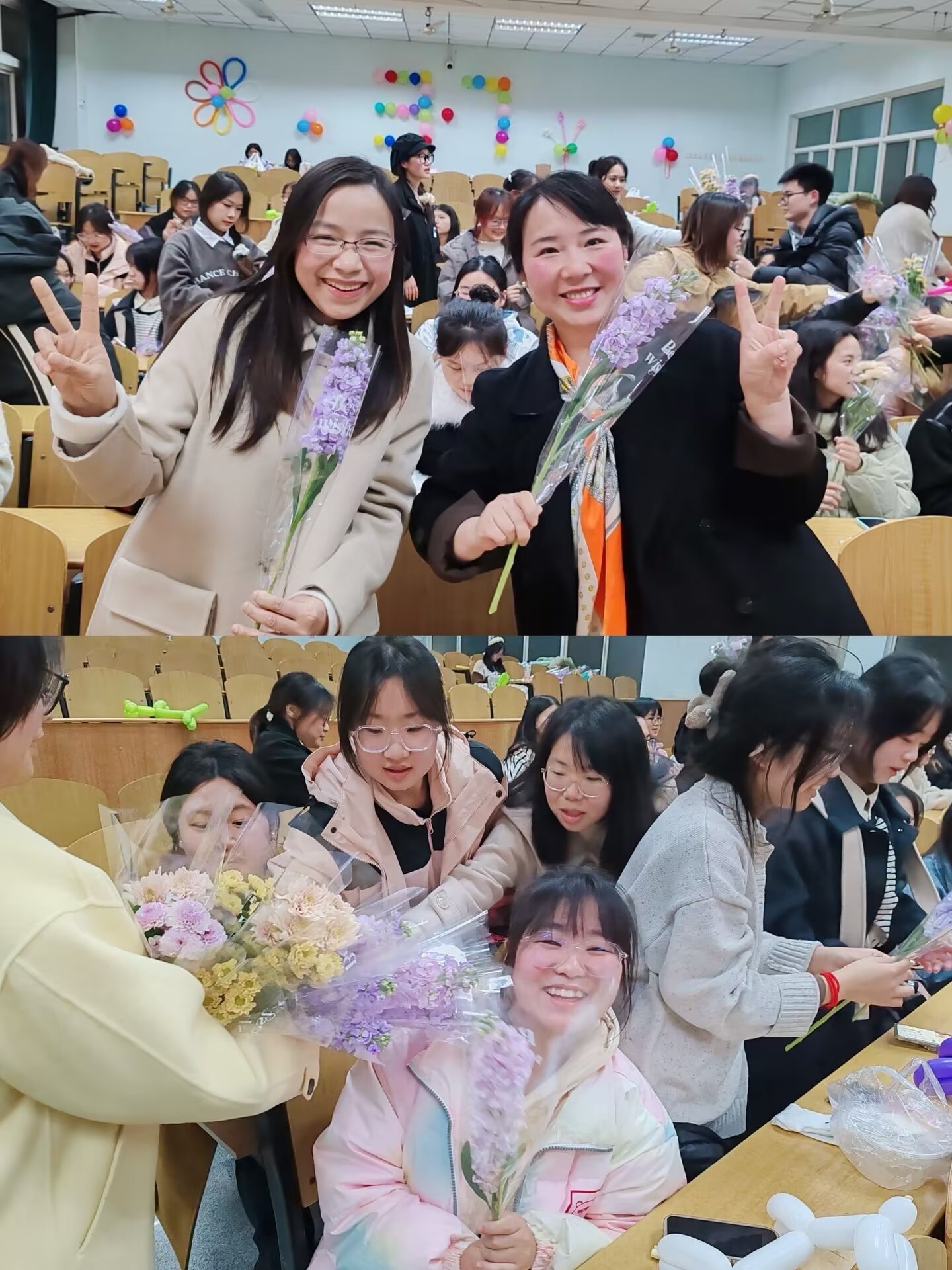 于13教D225室举办"芳华悦己,自在逐光"女生节特别活动,院党委副书记汤慧珍、学工办主任张云雾及全院女生到场参与活动。