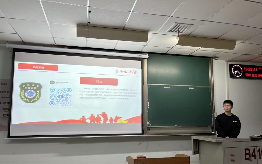 于13教D410室举办征兵政策宣讲会,2024级硕士研究生蔡坤鹏主讲,大发娱乐城