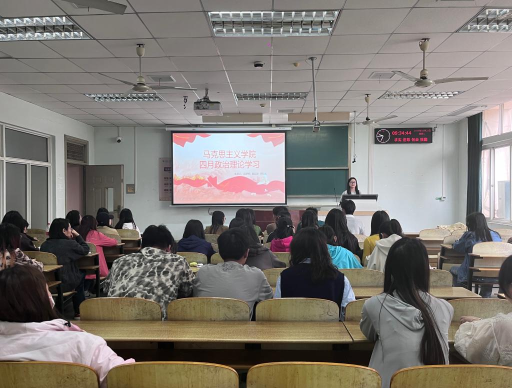 于4月22日在13教B-107教室开展研究生四月份政治理论学习。会议由研究生会实践部部长赵梦帆主持,2024级全体研究生参加。