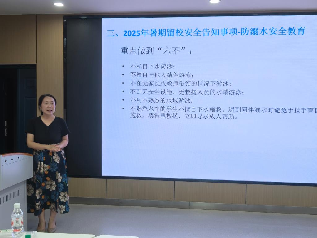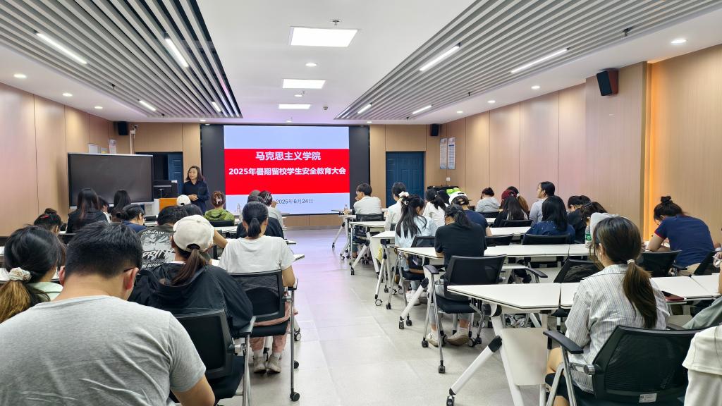还召开了留校学生安全教育专题会。辅导员张云雾强调了留校申请手续办理流程、假期留校学生管理要求,开展了防溺水和消防安全教育;副书记汤慧珍呼吁同学们合理安排假期时间,积极参与社会实践和有益的文体活动,不断提升自身综合素养。