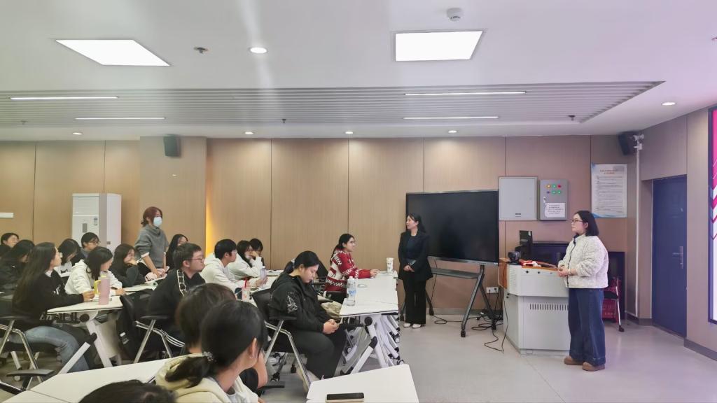 讲座伊始,张云雾简要介绍了两位学姐的亮眼成绩,瞬间点燃全场期待,也正式揭开了精彩分享环节的序幕。秦雯婧以“在热爱里深耕,于求索中绽放”为主题,聚焦新生入学后的学习适应难题,围绕“厚积薄发,行稳致远”的核心要义,从专业课攻坚、专业阅读积累、英语能力提升三个维度,细致分享了实用学习方法与优质资源平台,为新生搭建起系统清晰的学习框架。随后,袁田以“在长大中写下青春答卷”为题,围绕“勇敢、成长、机遇”三大关键词展开分享。她寄语新生“勇敢的人不是不落泪,而是含着泪继续奔跑”,鼓励大家直面挫折、无畏前行;在成长层面,她建议新生以榜样为镜,不断发掘自身潜力、突破自我;谈及机遇时,她援引“机遇是留给有准备的人”,引导新生树立长远眼光、做好职业。