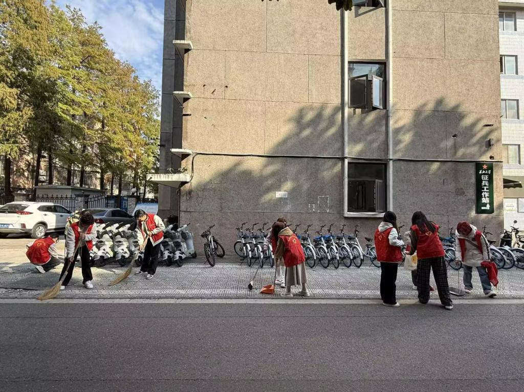 此次清扫活动,不仅以实干为校园“焕颜提质”,更让同学们在具体的劳动场景中,锤炼了吃苦耐劳的品质,深化了团队协作的意识。红色志愿背心间的互动、俯身劳作的身影,既传递了主动护校的主人翁精神,也让劳动的价值在校园里得到了生动的诠释,为校园文明建设注入了青春的温度与力量。